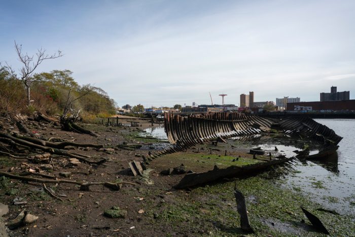 For years, Coney Island Creek has been like this: home to the rotting hulls of ships and a dumping ground for discarded tires, rusting shopping carts, and the like.