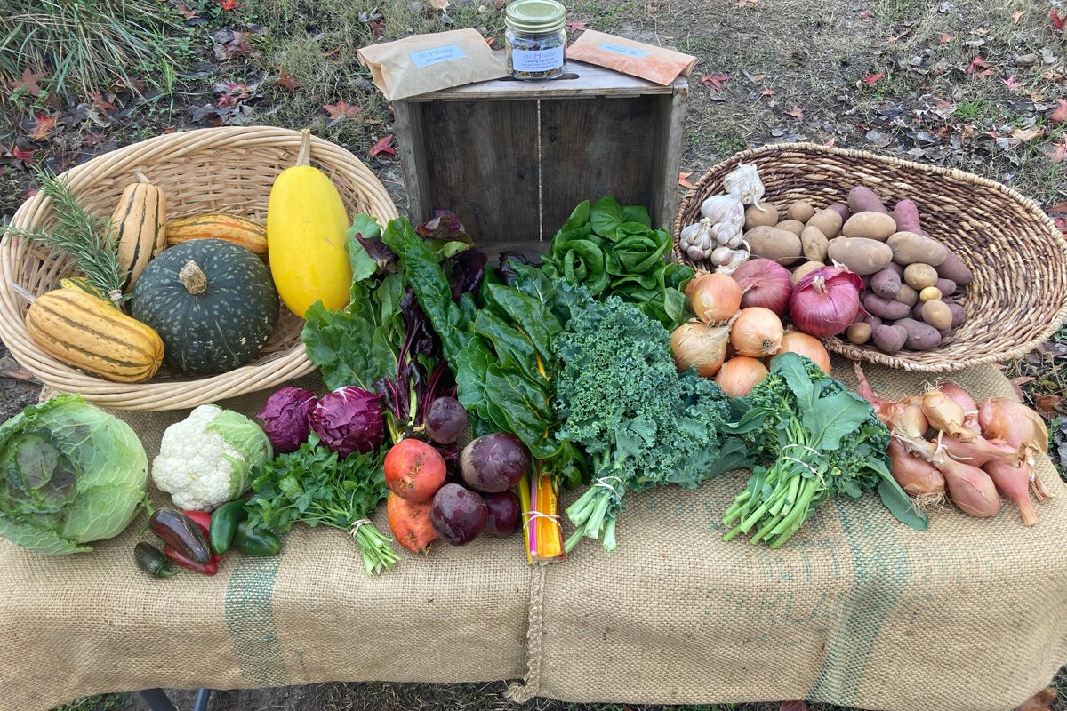 The final straw for Hachmyer was losing half of her crops in 2021 to drought. (She was dry farming a portion of her fields, meaning they were unirrigated.) Walking through fields of dying crops was emotionally draining, she says: “It was actually a fairly traumatic experience.” Hachmyer had already started to think about other ways of farming, and her farm assistant suggested the idea of running a winter community-supported agriculture (CSA) program. The time was right for something to shift, Hachmyer remembered thinking. “In order to continue farming, I need to change my model.”